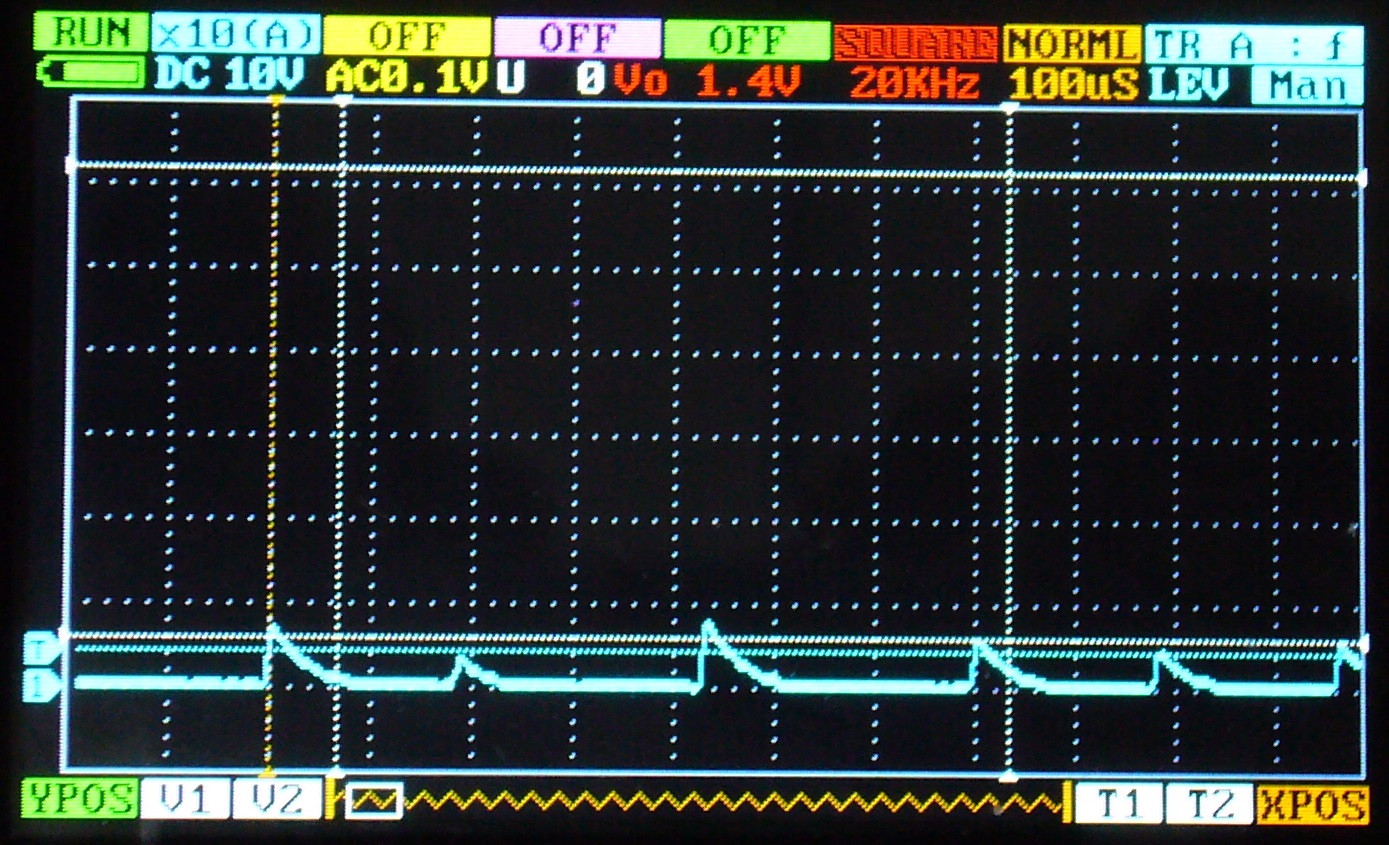 DCかパルスかわからないので、携帯オシロDS203で波形を見ることにします。